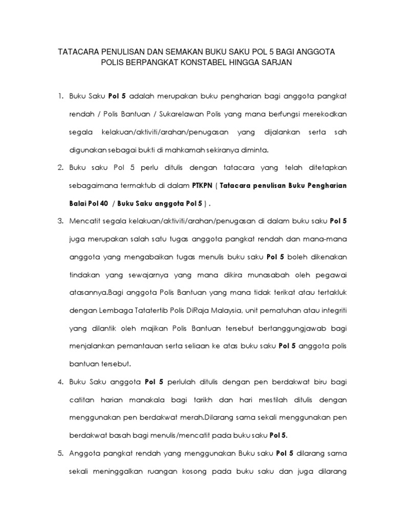 Tatacara Penulisan Dan Semakan Buku Saku Saku Pol 5 Bagi Anggota Polis Berpangkat Konstabel Hingga Sarjan Pdf